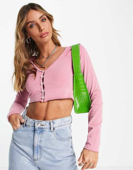 Rebeca corta rosa abotonada con diseño lavado de Topshop