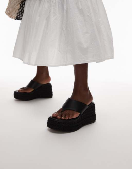 Sandalias de dedo negras de cuña estilo alpargata Heidi de Topshop