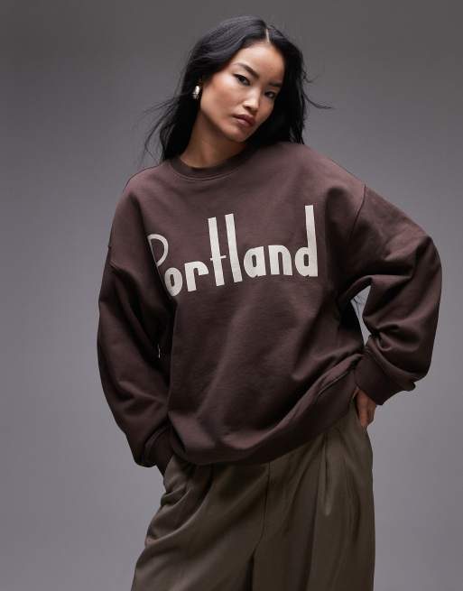 Sudadera marrón extragrande con estampado gráfico "Portland" de Topshop