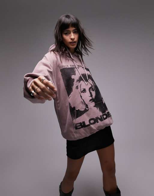 Sudadera rosa empolvado extragrande con capucha y estampado gráfico con licencia de "Blondie" de Topshop