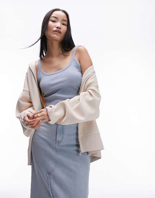 Top azul suave de tirantes finos con cuello ancho de canalé de Topshop