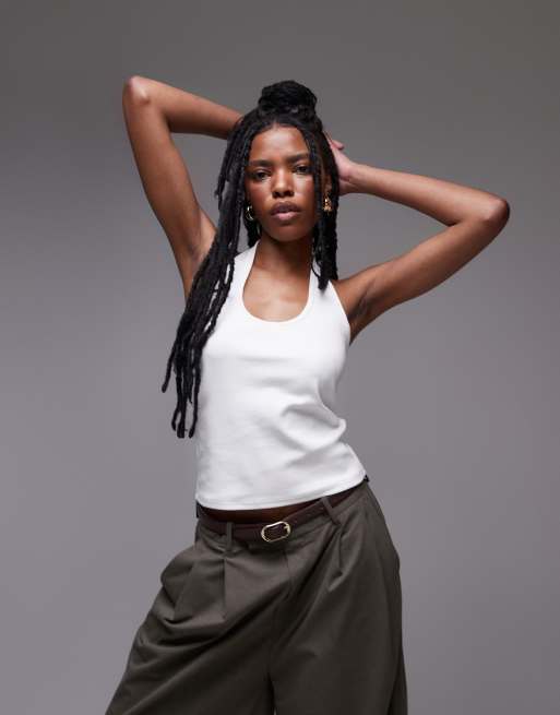 Top blanco con cuello halter de canalé de Topshop