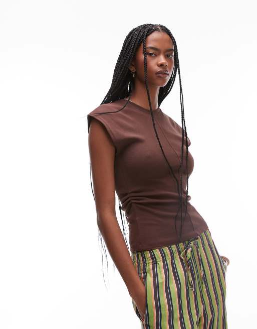 Top marrón chocolate con cintura ceñida de Topshop
