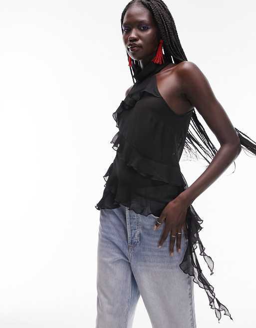 Top negro con cuello halter de Topshop