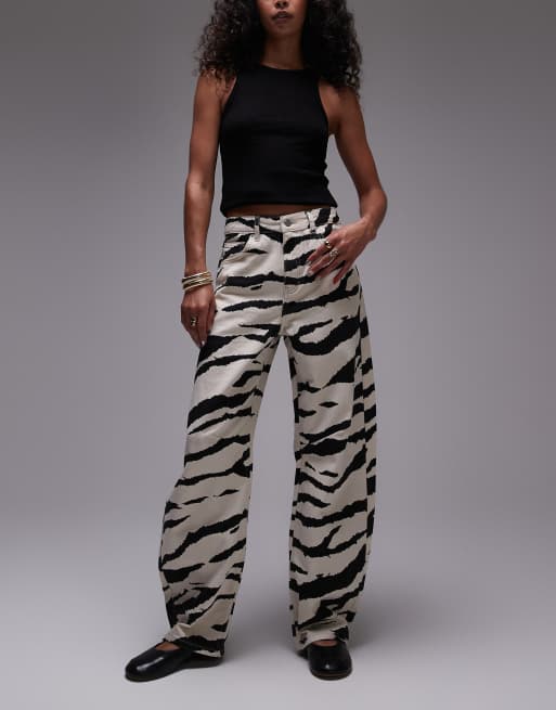 Vaqueros de talle medio y corte barrel con estampado de cebra de Topshop