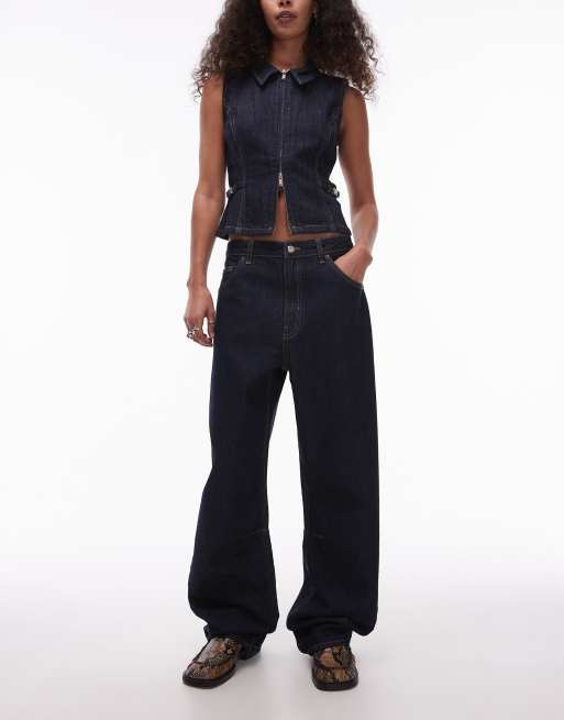 Vaqueros de talle medio y corte barrel con lavado azul añil de Topshop