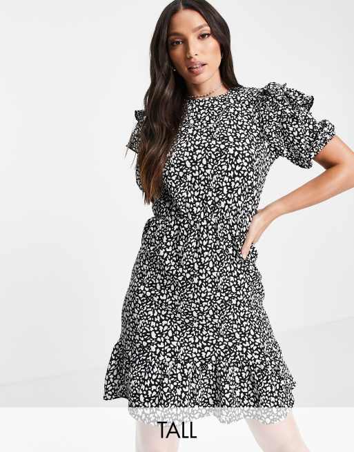 Vestido corto monocromático con volantes en los hombros de Topshop Tall