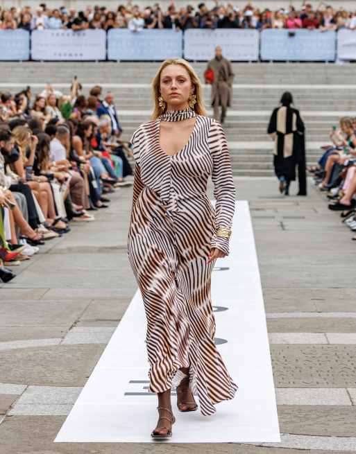 Vestido largo a rayas abstractas de manga larga con volantes y detalle de fular cruzado de Topshop