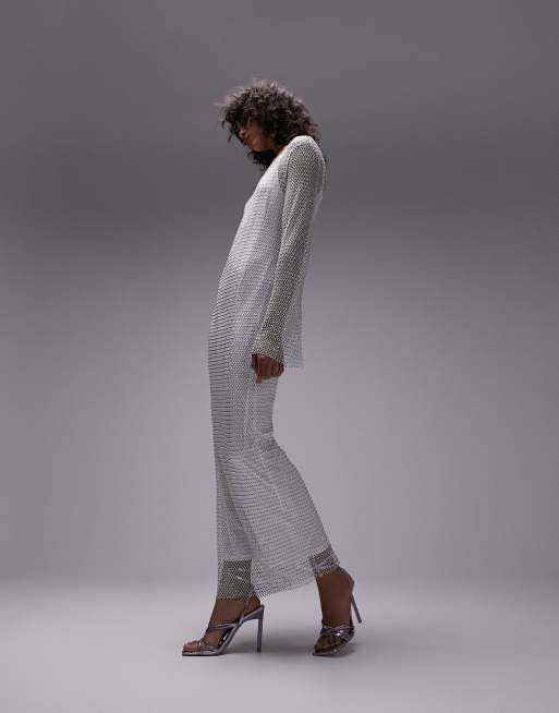 Vestido largo blanco de malla con strass de Topshop