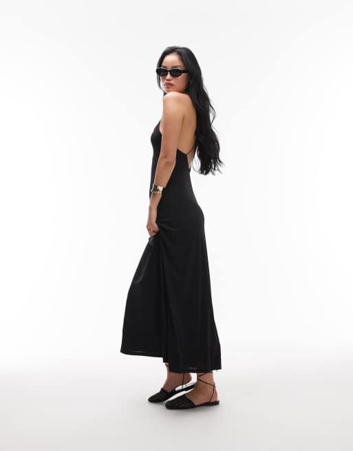 Vestido largo negro de tirantes con espalda baja de Topshop