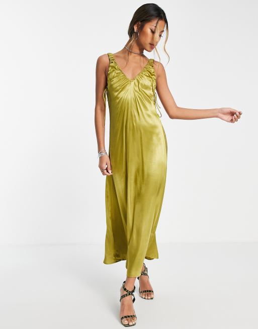 Vestido lencero verde con diseño fruncido de satén de Topshop