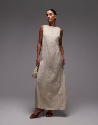 Vestido midi amarillo pastel cómodo con cuello subido y espalda abierta de satén de Topshop