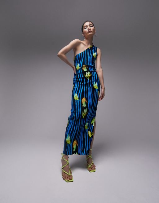 Vestido midi asimétrico con estampado de tulipanes de punto acanalado de Topshop