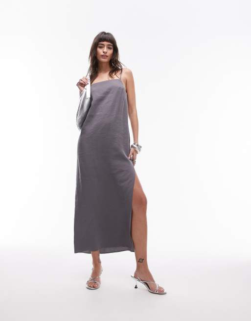 Vestido midi gris de tirantes de cupro de Topshop