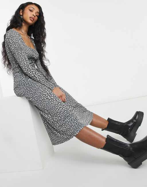 Vestido midi monocromático de encaja y punto de malla de Topshop