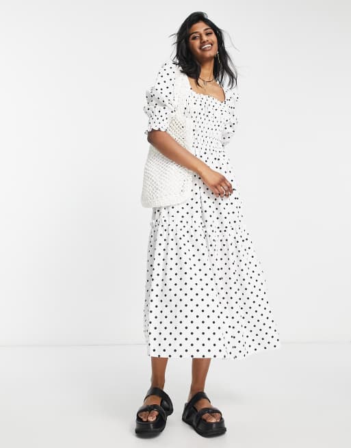 Vestido midi monocromático escalonado con estampado de lunares de popelina de Topshop