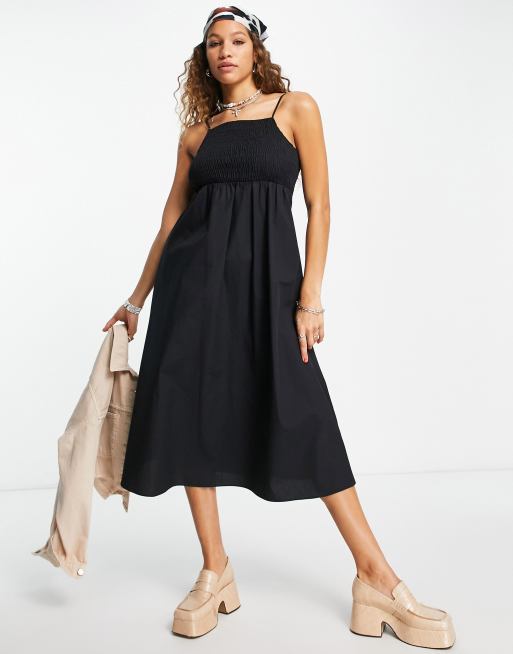 Vestido midi negro de tirantes con diseño fruncido de popelina de Topshop