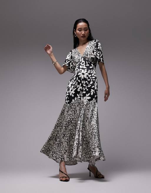 Vestido para eventos especiales midi con estampado monocromático de satén Mix & Match de Topshop
