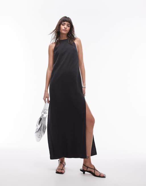 Vestido recto largo negro sin mangas con abertura hasta el muslo de Topshop