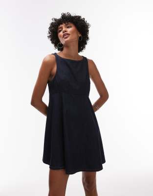Vestido vaquero corto con vuelo, lavado enjuagado y cuello barco de Topshop