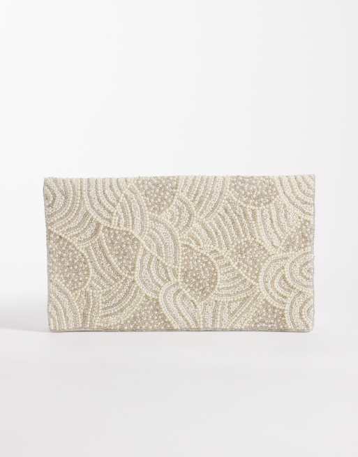 Bolso clutch blanco estilo sobre con abalorios de True Decadence