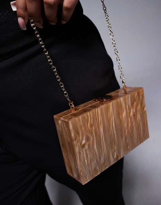 Bolso clutch color bronce rectangular rígido con acabado marmolado de True Decadence