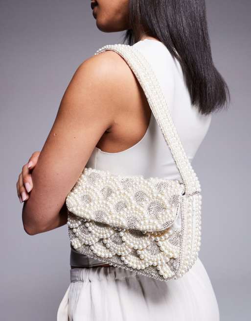 Bolso de hombro blanco con diseño de perlas y lentejuelas de True Decadence