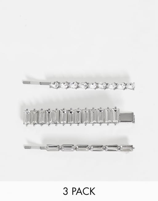 Multipack de 3 pasadores para el cabello plateados con diseño de cristales de True Decadence