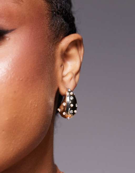 Pendientes de botón dorados en forma de lágrima con adornos de True Decadence