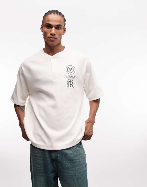 Top blanco hueso extragrande con mangas raglán y cuello panadero de True Religion