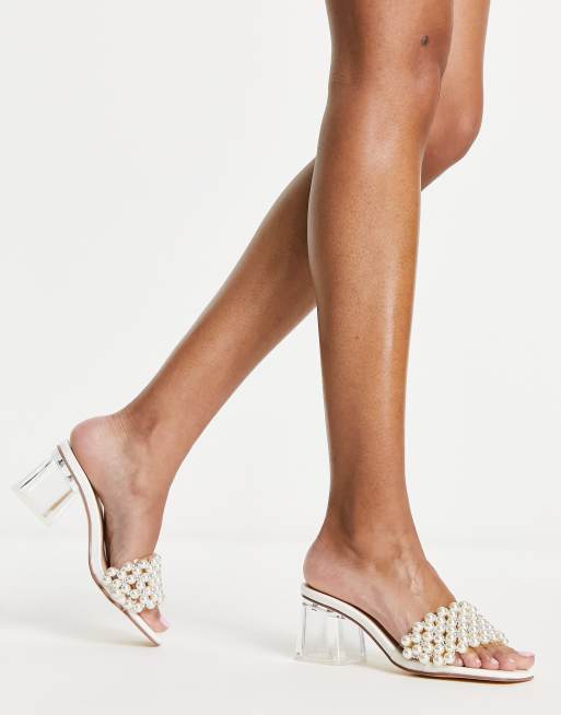Mules de novia blancas con diseño de perlas de Truffle Collection