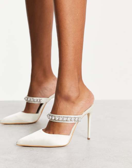 Mules para novia blancos con adornos de perlas de Truffle Collection