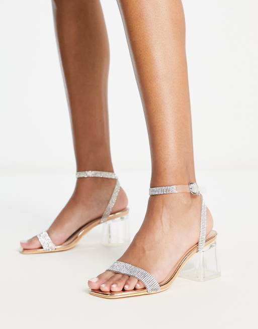 Sandalias dorado rosa con tacón transparente y diseño adornado de Truffle Collection