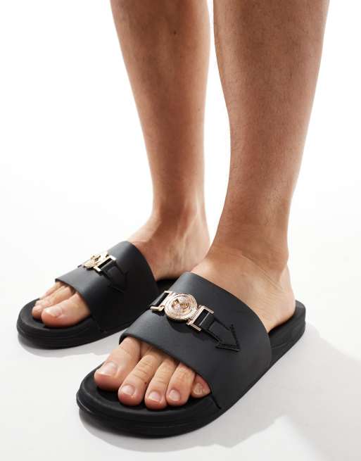 Sandalias negras con hebilla dorada de Truffle Collection