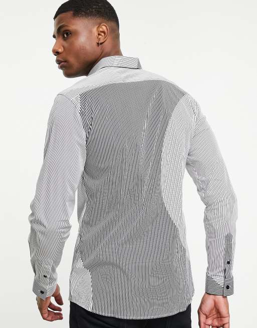 Camisa blanca de manga larga con rayas negras desiguales de Twisted Tailor
