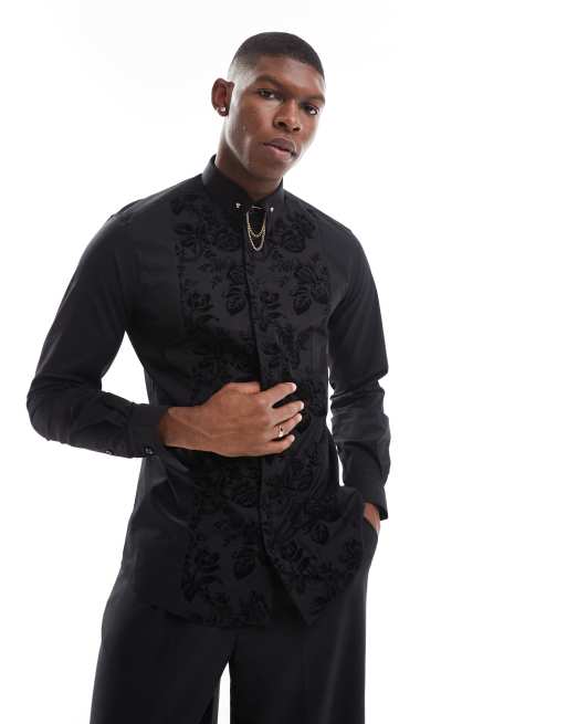 Camisa negra de manga larga de jacquard de Twisted Tailor