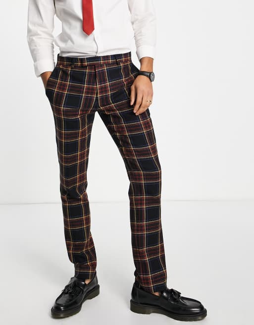 Pantalones de traje de corte pitillo a cuadros rojos y negros Greco de Twisted Tailor