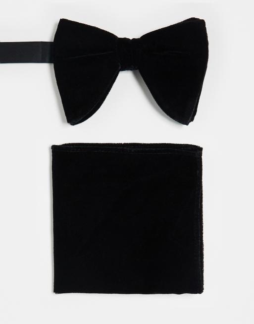 Pañuelo de bolsillo y pajarita negros de terciopelo de Twisted Tailor