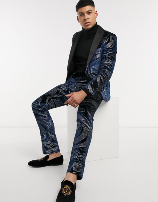 Traje azul medianoche con diseño de ondas de terciopelo de Twisted Tailor