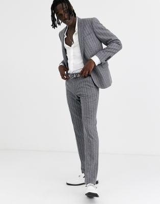 Traje muy ajustado a rayas grises de Twisted Tailor