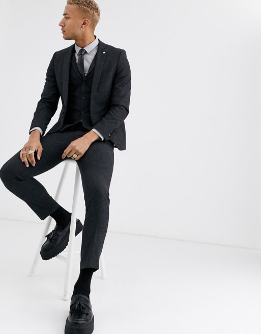 Traje muy ajustado con bolsillos de parche en gris oscuro de Twisted Tailor