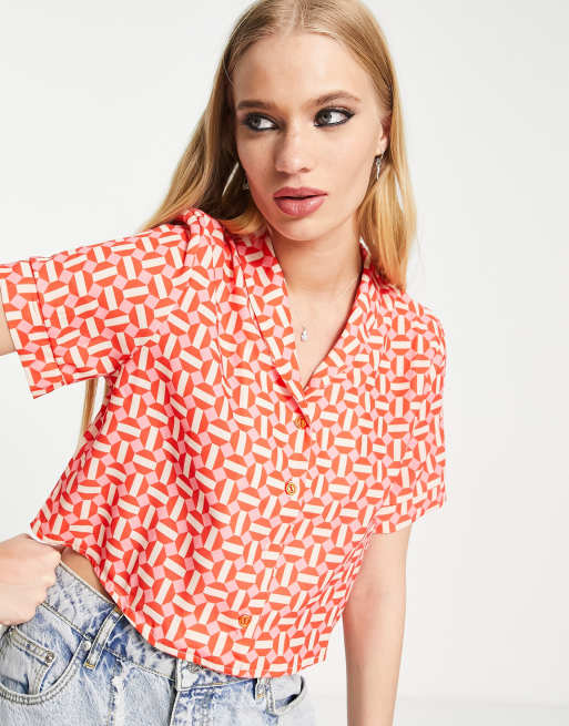 Camisa rosa de manga corta y corte cuadrado con estampado geométrico de Twisted Wunder (parte de un conjunto)