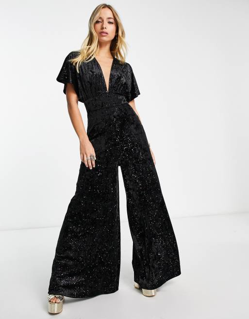 Mono largo de pernera ancha de terciopelo con purpurina de Twisted Wunder