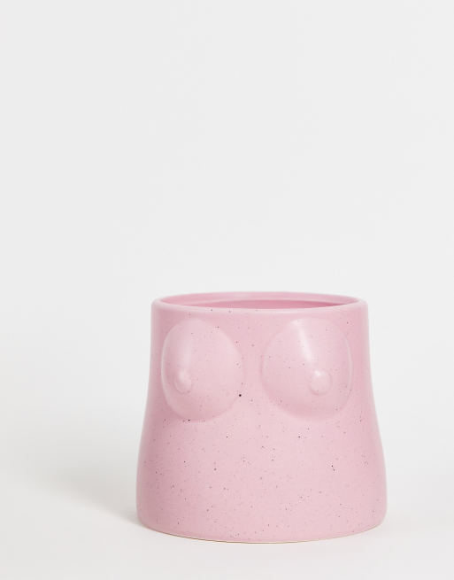 Macetero mediano rosa moteado con diseño de pecho de TYPO