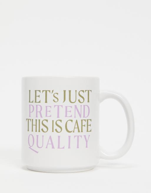 Taza con eslogan "Let's pretend this is café quality" de TYPO