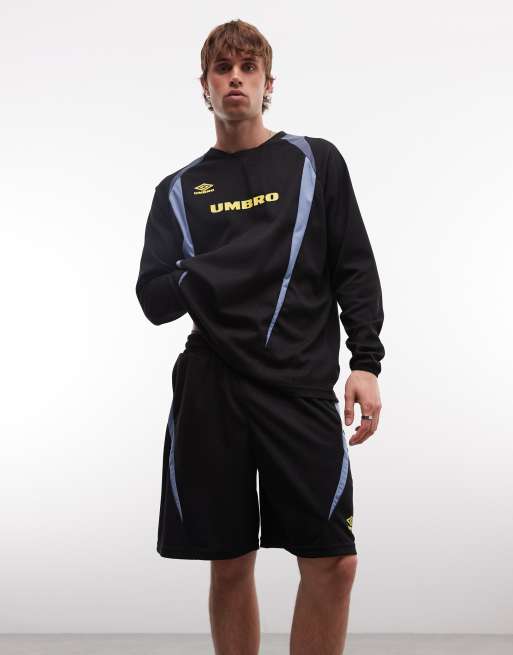 Pantalones cortos negros y amarillos extragrandes con diseño de paneles de Umbro