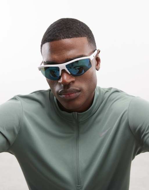 Under Armour - Gafas de sol blancas rectangulares con lentes verdes Flexlite