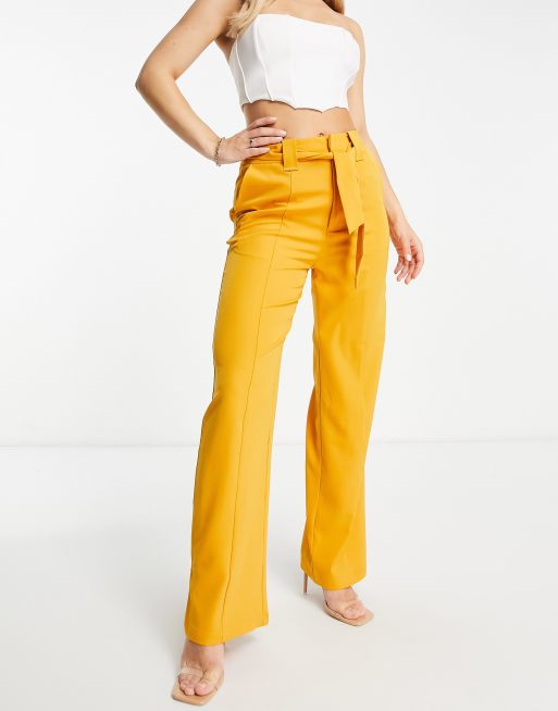 Pantalones naranja mango de talle alto con cinturón de Unique21