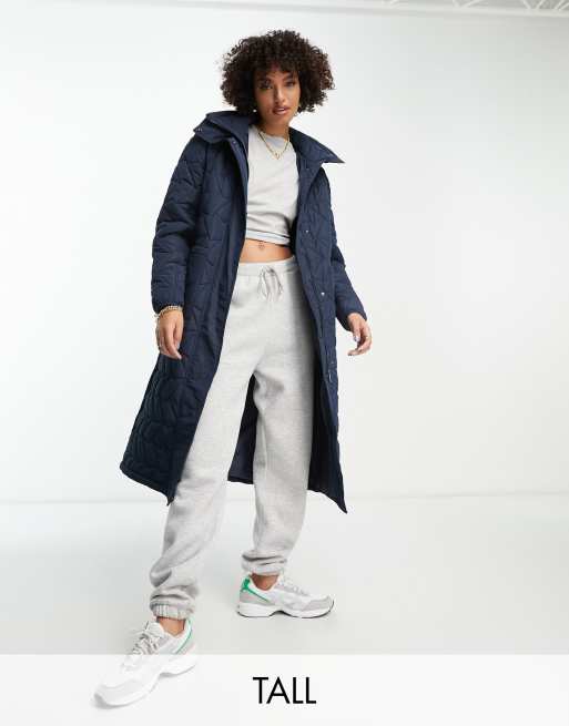 Abrigo de plumas largo azul marino con diseño guateado de zigzag de Urban Code Tall