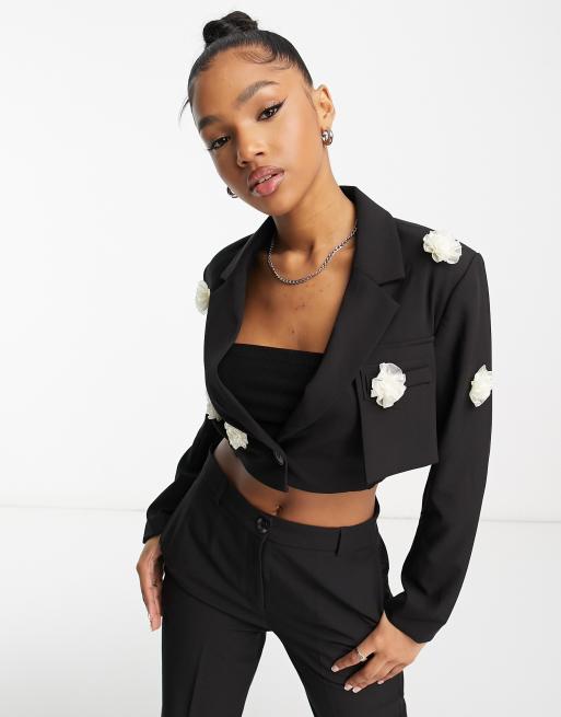 Americana corta negra con diseño floral 3D de Urban Revivo